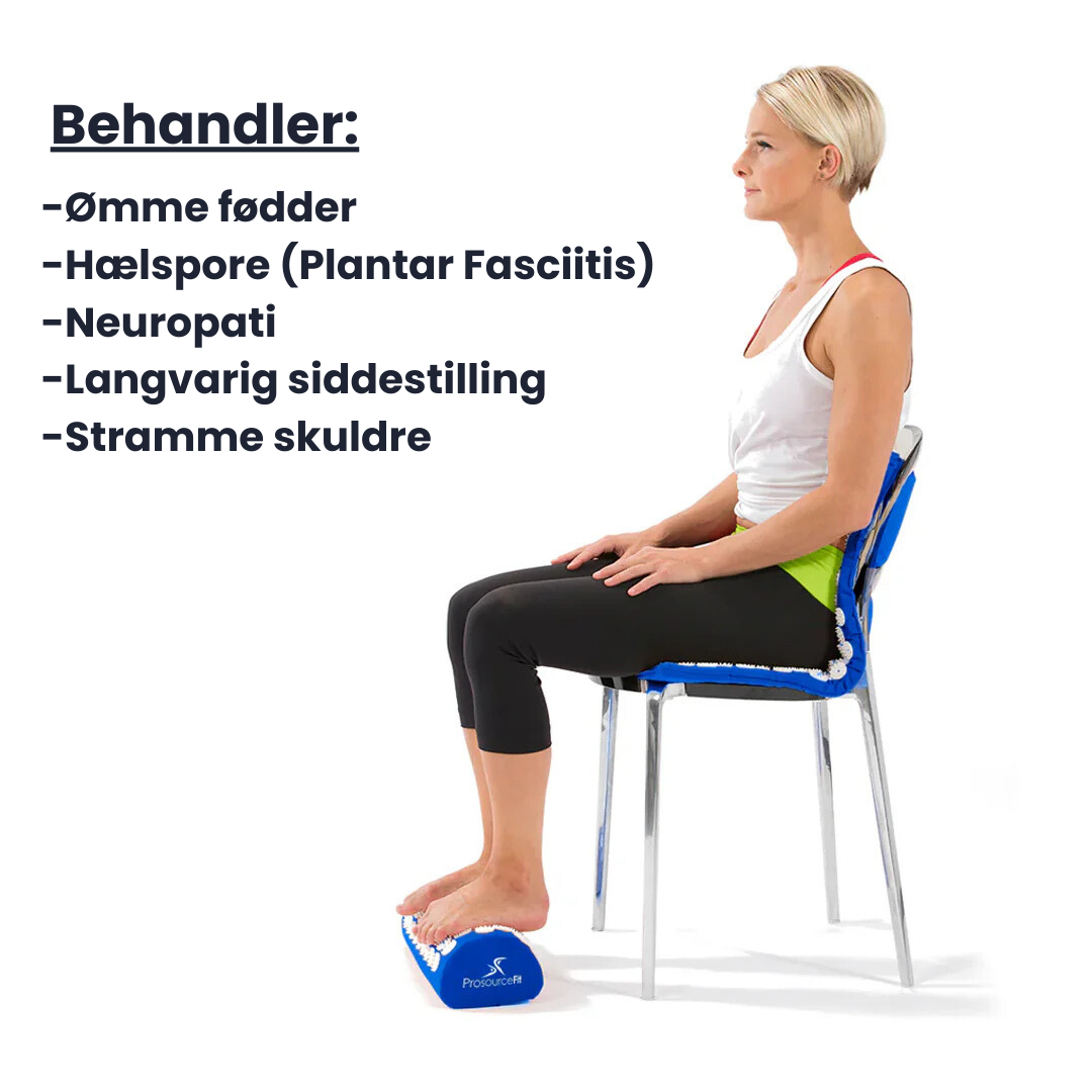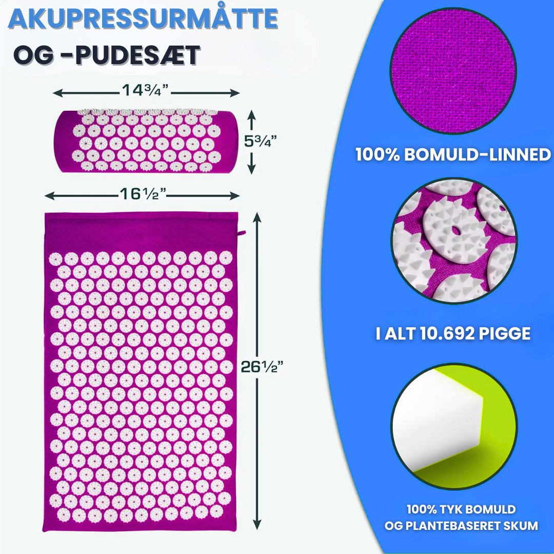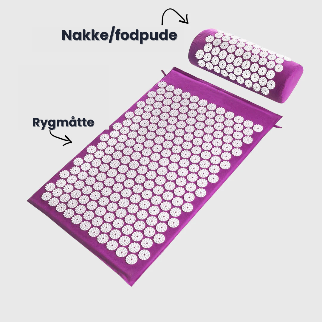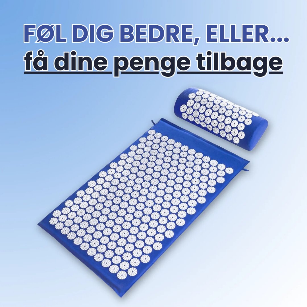 OrtoKomfort™ akupressursættet bruger tusindvis af akupressurknuder til at ramme triggerpunkter i ryggen, balderne og benene, hvilket giver massage og dyb vævsstimulering.
