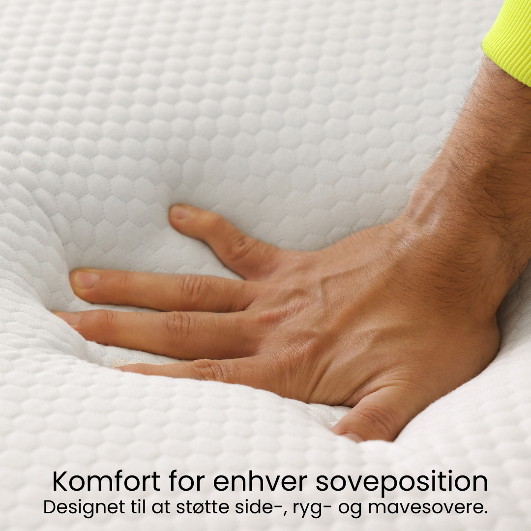 Ja, det er det! Puden er designet til at støtte alle sovepositioner, uanset om du sover på ryggen, siden eller maven.
