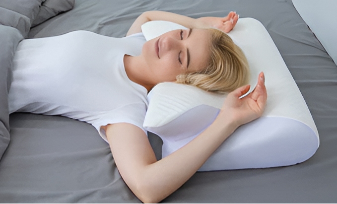 OrtoKomfort™ Relief Pillow er designet til at støtte den naturlige krumning af din hals, hvilket hjælper med at lindre spændinger og fremme korrekt justering af rygsøjlen.